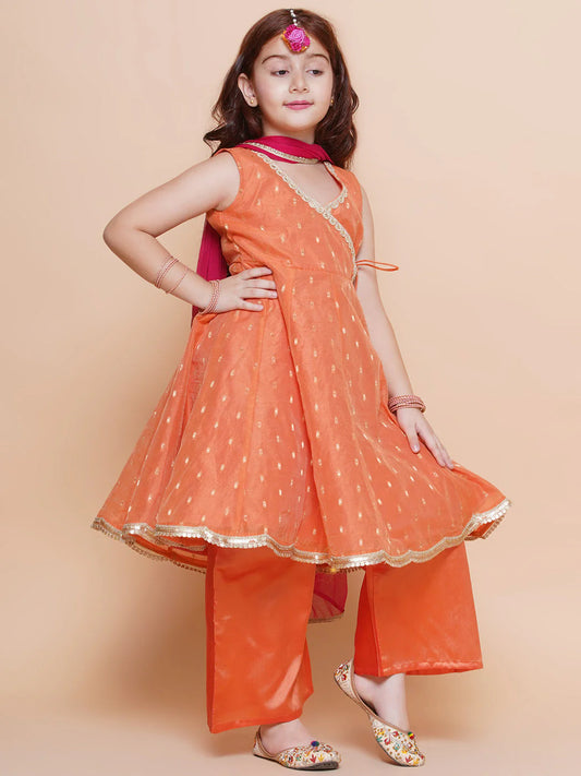 Girls Cute Peach Orange Ethnic and Traditional Kurta & Pajama, Dupatta Dress