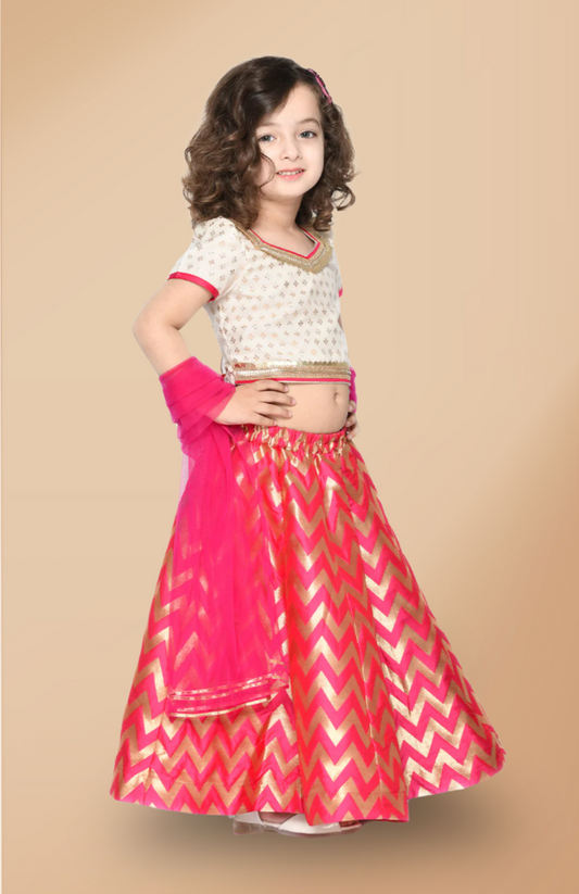 Girls White and Magenta Lehenga Choli Ethnic Dress